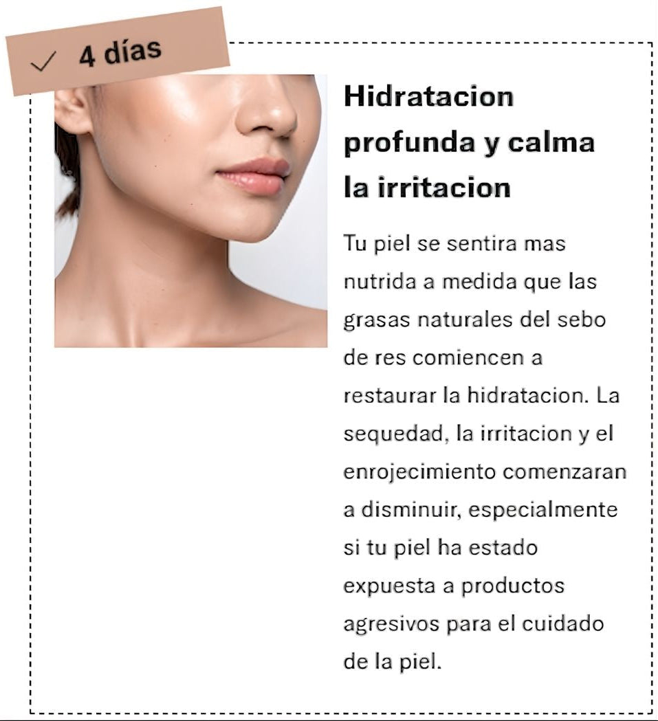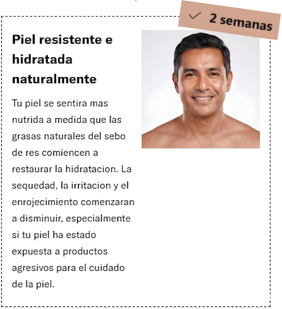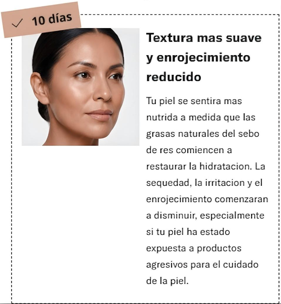 El Sebo de Res nutre desde adentro y es lo más parecido que existe a la grasa natural que tu piel producía cuando eras joven.