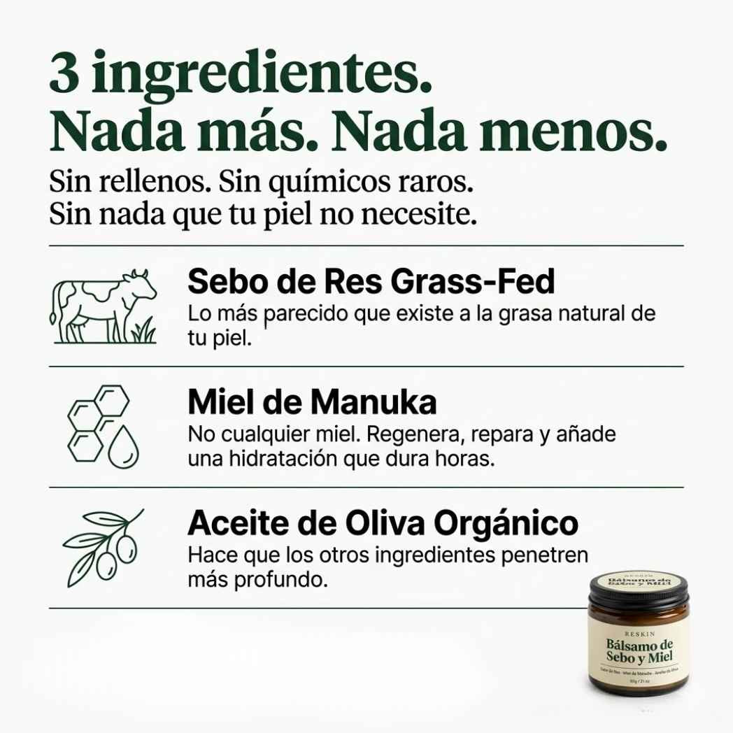 Mientras duermes, el Sebo de Res penetra profundo y hace lo que ninguna crema sintética puede — nutrir tu piel desde adentro con lo único que ella realmente reconoce.